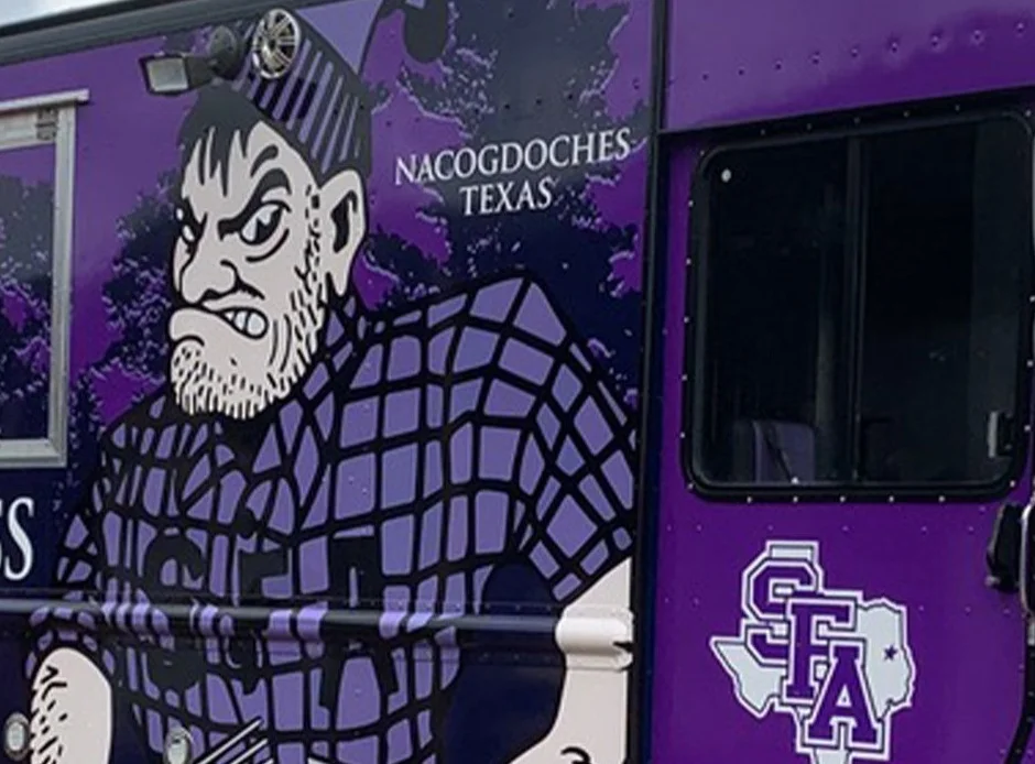 Stephen F. Austin State University is located in Nacogdoches, Texas. In 2019, the university acquired a new classroom for the Hospitality Administration and Food program. The new classroom happened to be a food truck and it needed a new SFA forward look. The program not only planned to have classes in the truck, but also wanted to give students the space to run the truck as a business. Students would be given the opportunity to cook and serve on and off campus, so the food truck needed to be recognizable and 100% SFA. We utilized the most significant elements to the university, it’s Lumberjack mascot, the tall pine trees surrounding the campus, the “Axe 'em, Jacks” hand sign, and the bright signature purple color palette. We made one alteration to the Lumberjack though, instead of holding an axe, he’s holding a knife and fork. The food truck is still run by students in the Hospitality Administration and Food program, and remains an important part of the curriculum.